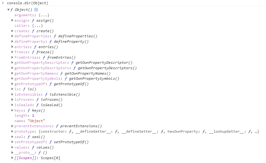 또한 생성자 함수인 Object와 인스턴스인 객체 리터럴 사이에는 this를 통한 연결이 불가능하기 때문에 여느 전용 메서드처럼 '메서드명 앞의 대상이 곧 this'가 되는 방식 대신 this의 사용을 포기하고 대상 인스턴스를 인자로 직접 주입 해야하는 방식으로 구현돼 있다